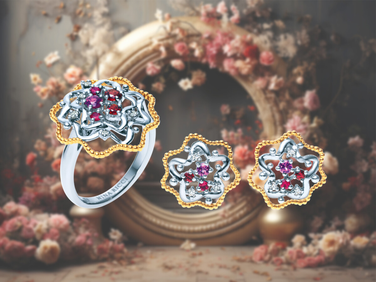 トップ画像:FLOWER Pt900・K18 ロードライトガーネット・ガーネット・ルビー・ダイヤモンド リング ¥378,400 ピアス ¥294,800 イヤリング ¥391,600(NINA RICCI)
