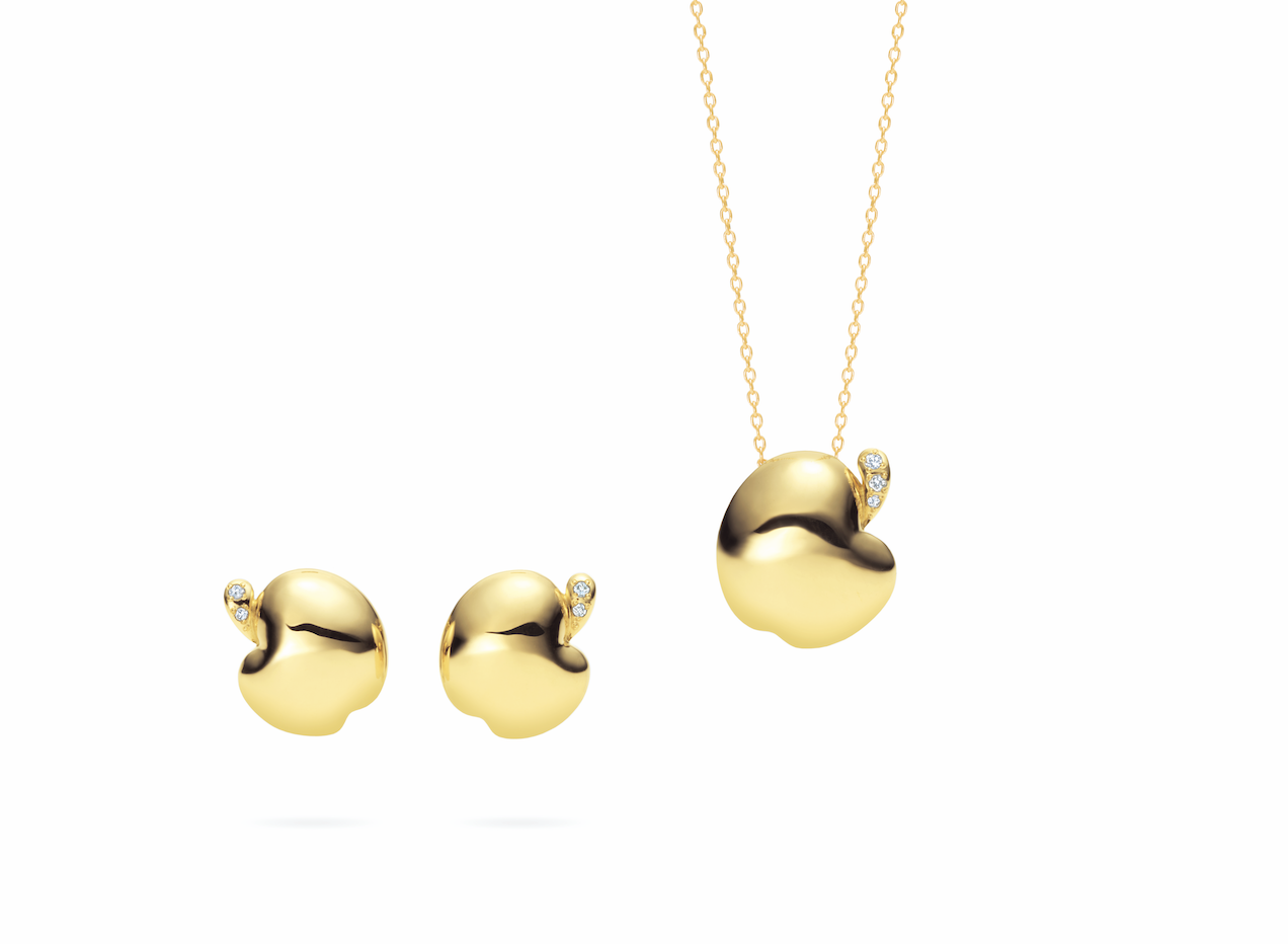 いつもの装いに遊び心をプラスしたいなら、香水「Nina」のボトルデザインからインスパイアされた、ぷっくりとしたリンゴモチーフのゴールドジュエリー「LA POMME(ラ ポム)」を選んでみましょう。リンゴは「知恵」、「収穫の実り」などを意味し、ニナ リッチを象徴するモチーフの一つです。「LA POMME」は愛らしくも、そのボリューム感により大人の女性に似合うデザインとなっています。