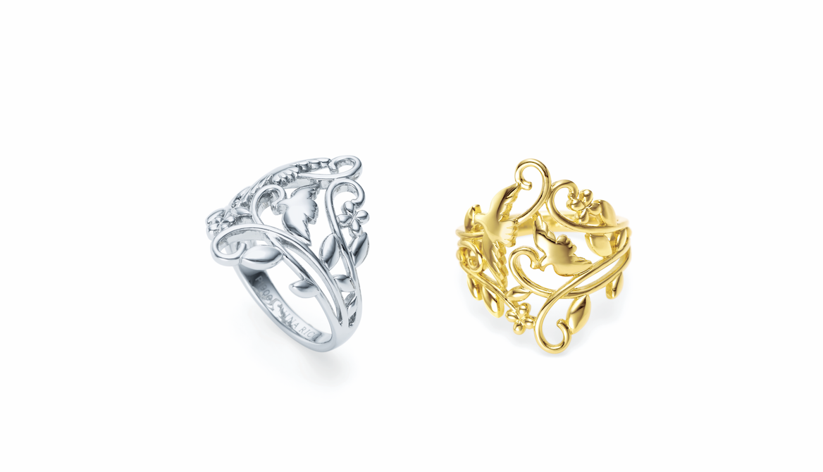 ネックレスは地金のボリューム感と、流れるような有機的なシルエットを特徴としたオートクチュールから始まったニナ リッチらしいデザインです。リングはプラチナとゴールドの2種類あり、地金のカラーで雰囲気が全く違い、それぞれに魅力があります。