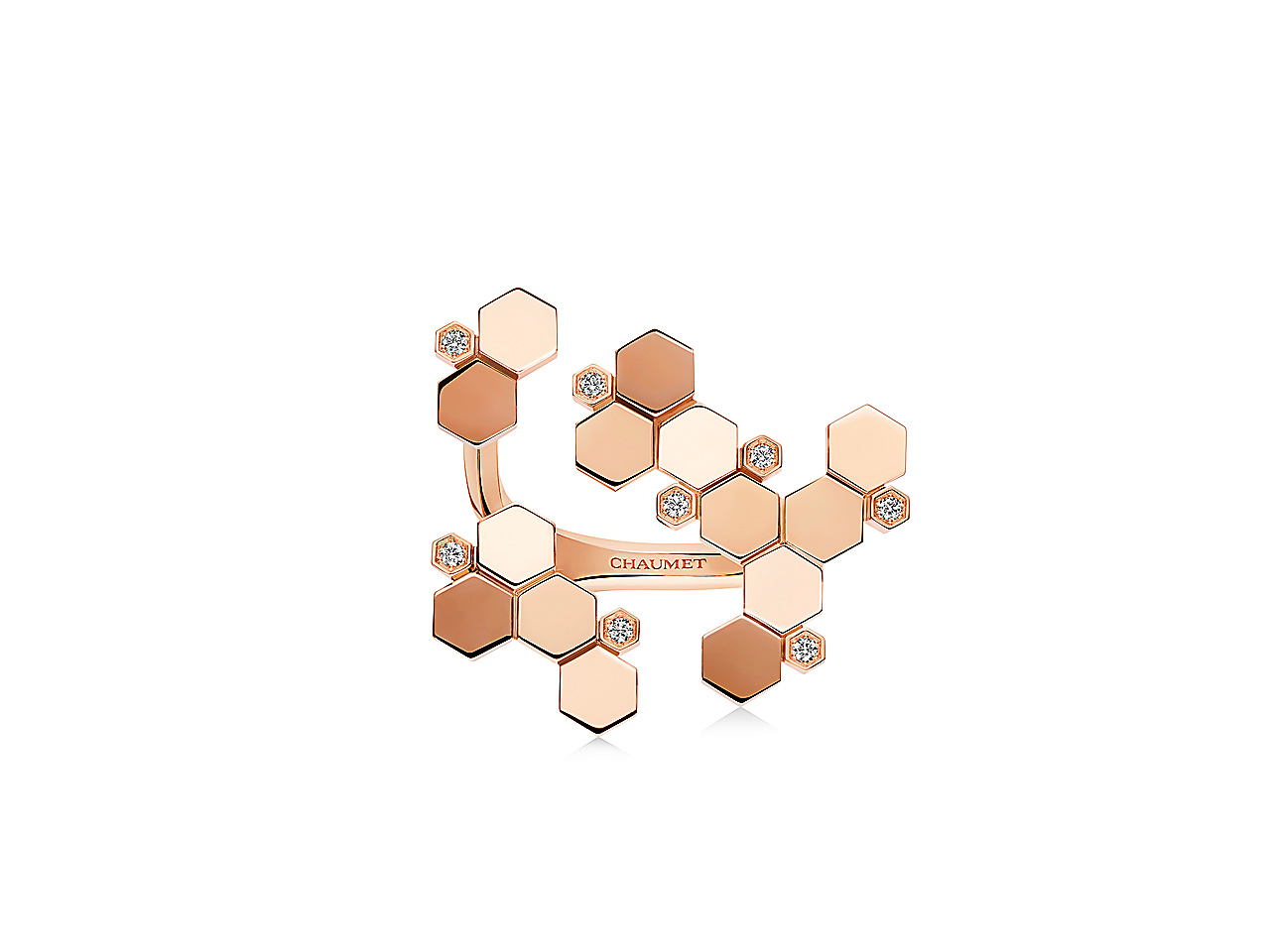 メゾンに深く縁のあるミツバチのモチーフを、現代的かつタイムレスなスタイルへ昇華させた「ビー ドゥ ショーメ」コレクション。鏡面仕上げが施されたハニカムモチーフは、知的な美しさと愛らしい輝きを湛え、コレクションを象徴するデザインとして人気を博しています。