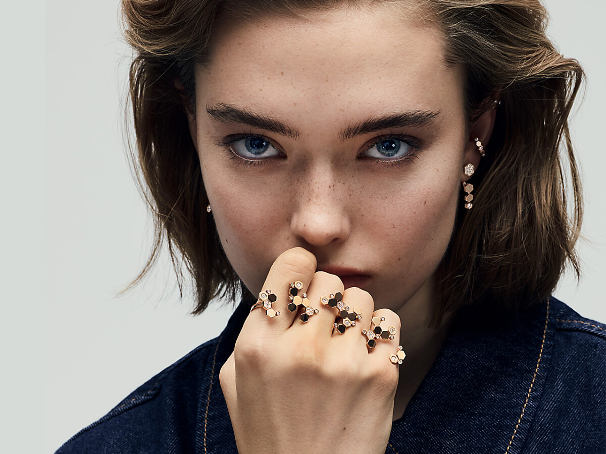 メゾンに深く縁のあるミツバチのモチーフを、現代的かつタイムレスなスタイルへ昇華させた「ビー ドゥ ショーメ」コレクション。鏡面仕上げが施されたハニカムモチーフは、知的な美しさと愛らしい輝きを湛え、コレクションを象徴するデザインとして人気を博しています。
